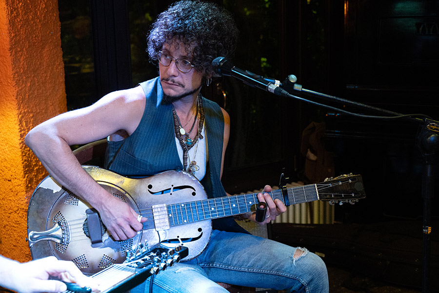 Emir con la sua bella voce è un maestro della steel guitar e Riccardo con la sua National resonator del 1931 è mitico: sono un piacere per l’ascolto.